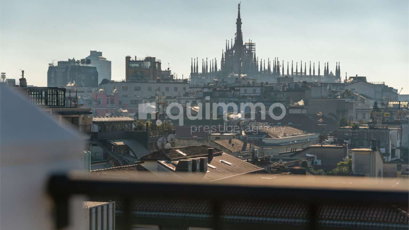 Cod: atticospiga115 - In the Fashion District, on the top floor of an early 1900s period building, fully furnished apartment overlooking Via della Spiga and the internal courtyard. The layout includes an entrance hall, a double-exposure living area with fully equipped open kitchen, a master bedroom with dedicated en-suite bathroom, and a second bedroom/study served by an additional bathroom. A rooftop terrace on the upper level offers a breathtaking view over the city center. Very low service charges. Independent hea...