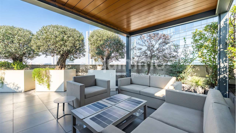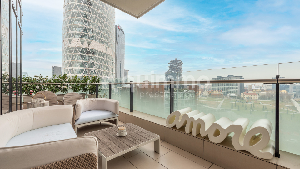 Cod: Aria B01.04_Loc - Torre Aria: we offer a splendid 165 m2 commercial residence for rent, with a 30 m2 terrace, on the 7° floor above ground. The property will be available from June 2026. Possibility of contract to companies as well. The unit is located fully furnished with prestigious designer furniture custom-made by a well-known architect. The apartment consists of a large double fully glazed living area with dining area and overlooking the wonderful terrace with panoramic views of the Porta Nuova park, La Bib...