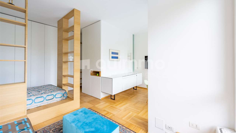 Just steps away from Largo la Foppa and Corso Garibaldi, in a residential tower with full day concierge service, a studio apartment furnished with designer finishes, featuring a hidden kitchen, living area with TV corner, double bed with custom-made wardrobes, and a bathroom with shower. Overlooking Sempione Park. Very central location, well connected thanks to the nearby Largo la Foppa metro station. 4+4 residential lease under flat tax regime with a monthly rent of €1,400 plus approximately €150/month for utilities, subject to adjustment. Available starting from December 2025