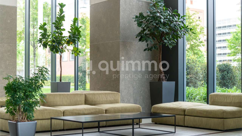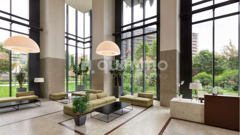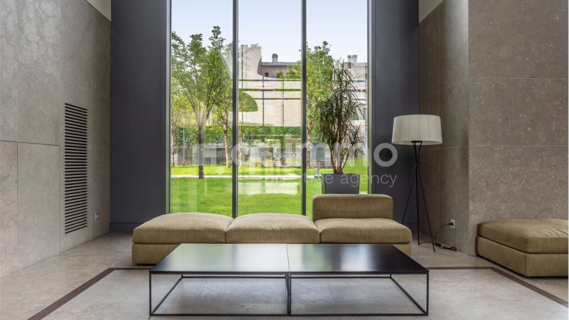 The architecture, paired with advanced technologies, ensures optimal energy efficiency, reduces thermal fluctuations, contributes to oxygen production, and absorbs fine dust particles. The building’s lobbies, with large glazed surfaces that merge seamlessly with the outside world, are enhanced by the greenery of Giardino De Castilla and feature warm-toned natural materials. Concierge service, guest lounge, and dedicated leisure areas further elevate the residential experience.