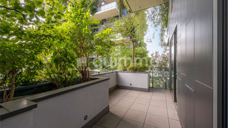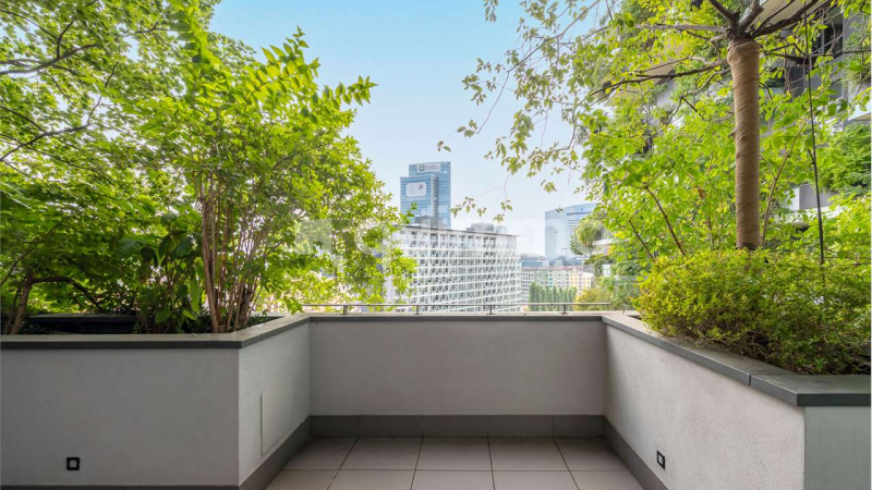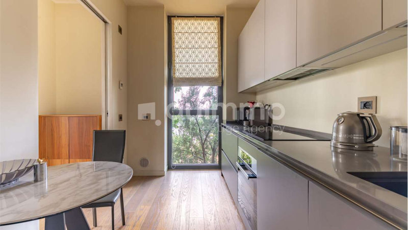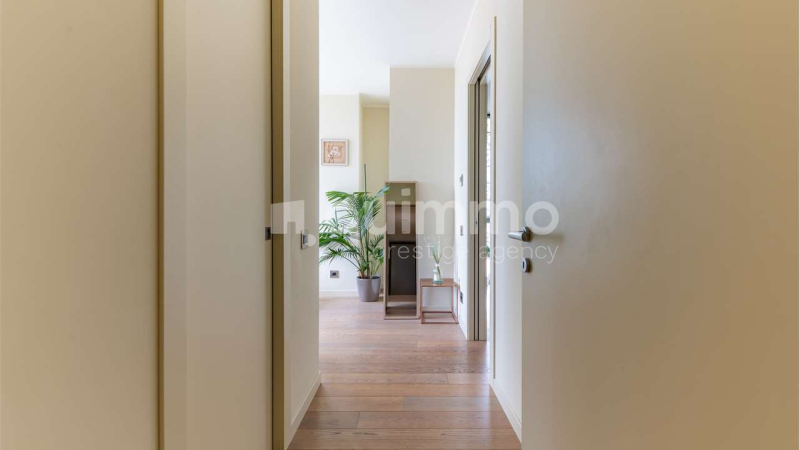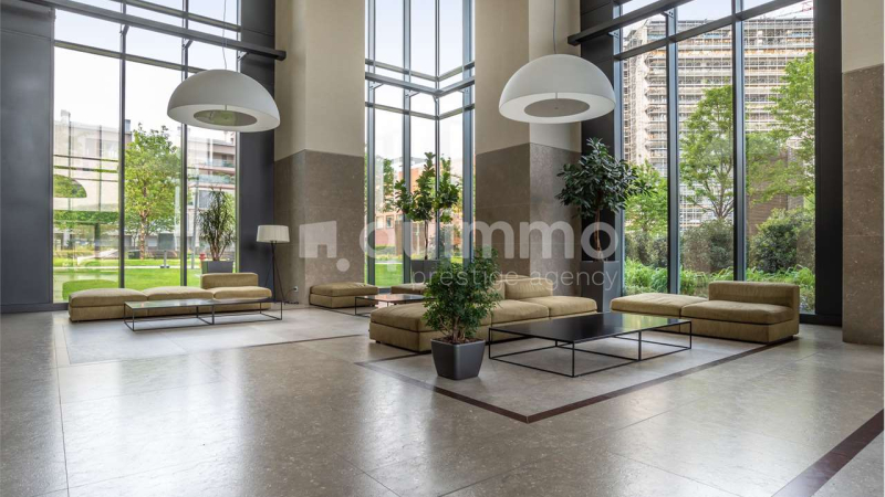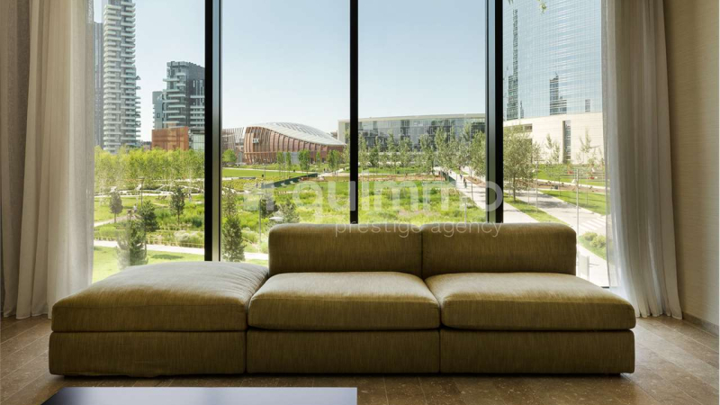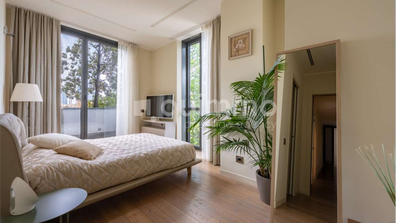 The property boasts a breathtaking view over Milan’s contemporary skyline, enriched by the lush greenery surrounding the terraces, creating a unique blend of architecture and nature. Floor-to-ceiling windows flood every room with extraordinary natural light, making it a central feature of the living experience.