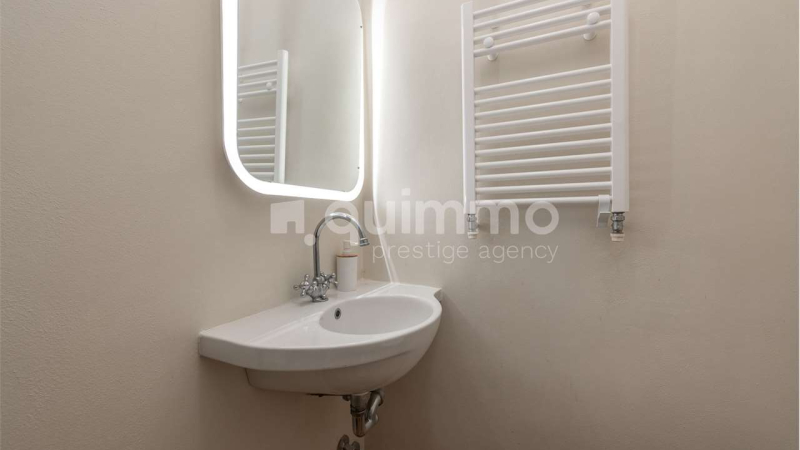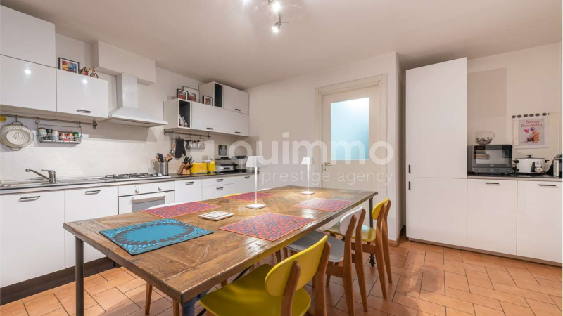 The living area, located on the ground floor, benefits from triple exposure, offering bright and welcoming spaces ideal for both everyday living and entertaining, and is complemented by a guest bathroom. The lower ground floor hosts a fully equipped eat-in kitchen and a laundry area, thoughtfully organized for practical daily use.