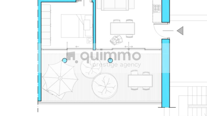 The fully furnished apartment consists of a living area with open kitchen, double bedroom, bathroom with shower, large terrace, cellar and single garage in the building with separate price. The rent indicated is for a contract with cedolare secca.
