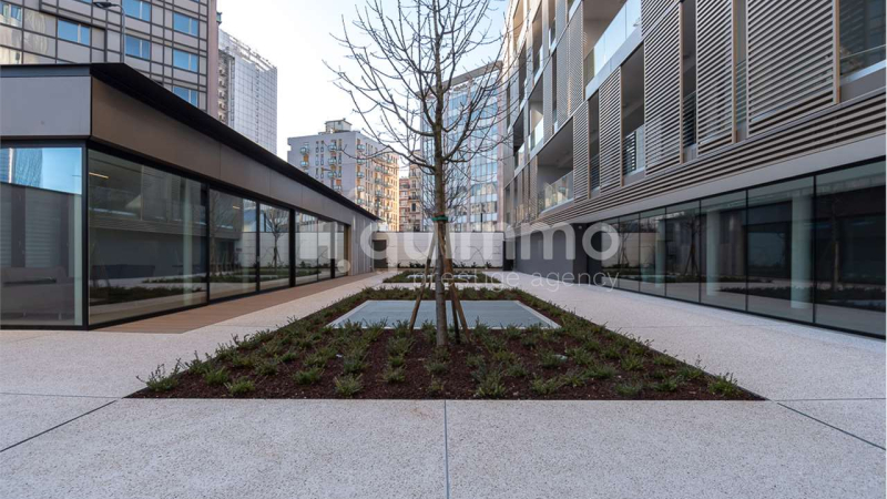 The high-performance technological component allows very high yields and reduced energy consumption. The views of the private condominium garden, the heart of the building, and the skyline of Porta Nuova, allow tranquility in an international setting. For the exclusive use of residents, fitness area and lounge: the latter is configured as a single multifunctional open space of about 100 square meters. Inside Iq9 House, we offer for rent a beautiful pied à terre of 50 square meters plus 30 of terrace. Contract lease 4+4 only with the tax incentive (cedolare secca), monthly rent of Euro 2.700 plus Euro 350 condo charges including heating and cooling excluding final balance.