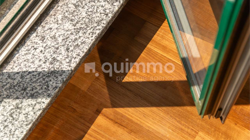 Located on the third floor with elevator, the apartment stands out for its well-designed layout and quality of outlooks. The living area, spacious and filled with natural light, opens onto large terraces on both sides, creating a seamless connection between indoor and outdoor spaces and offering pleasant views over the greenery.