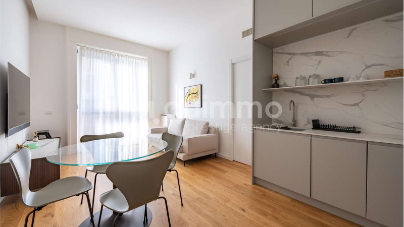 Piazza Repubblica-Porta Nuova: one of the city's most renowned and vibrant areas, we offer for rent an elegant and modern one-room apartment, completely renovated and furnished with custom-made designer furniture. The apartment is located on the upper first floor of a prestigious building, with well-maintained common areas and a concierge and elevator. The property, bright thanks to large windows, comprises a welcoming living area with a stunning custom-built open-plan kitchen, featuring high-quality finishes and functional solutions that optimize space. The sleeping area includes a quiet and comfortable double bedroom with floor-to-ceiling custom-made wardrobes. The property also includes a modern bathroom with a large shower and warm, high-quality tilework. This is the ideal solution for those seeking style, comfort, and a strategic location with excellent transport links in the heart of Milan. Already available. Annual rent € 24,000.00 plus condominium expenses.