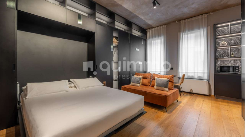During the day, the sleeping area elegantly retracts to make room for the living space, ensuring a tidy and compact atmosphere. The separate kitchen, modern and functional, features high-end finishes, such as a marble backsplash and integrated LED lighting that enhances its elegance. The bathroom, with its refined design, boasts dark marble coverings and a large, sophisticated, and relaxing shower. Large windows provide abundant natural light, highlighting the parquet flooring and custom-made furnishings. Every corner reflects meticulous attention to detail, making this apartment a true residential gem. Perfect for professionals, students, and investors looking for a home that combines style and practicality, or for those seeking an exclusive pied-à-terre in Milan. A unique opportunity to live in the most prestigious and captivating area of the city. Asking price: € 540,000 Commission: 4% + VAT on the sale price