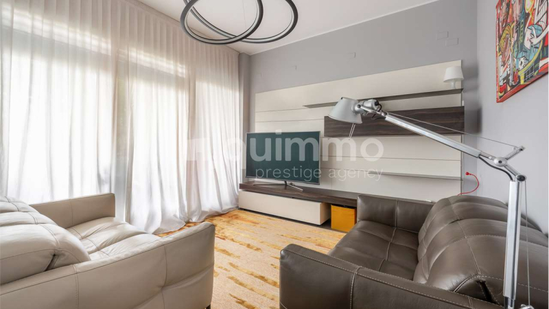 Dall’ingresso si accede ad un ampio living interamente affacciato sulla splendida terrazza di 30 mq: Una bella cucina abitabile , separata e dotata di tutti gli elettrodomestici ha anch’essa accesso alla terrazza . La parte notte, ben divisa, è organizzata con una camera master con cabina armadio attrezzata e bagno en suite e due belle camere da letto con bagno dedicato.