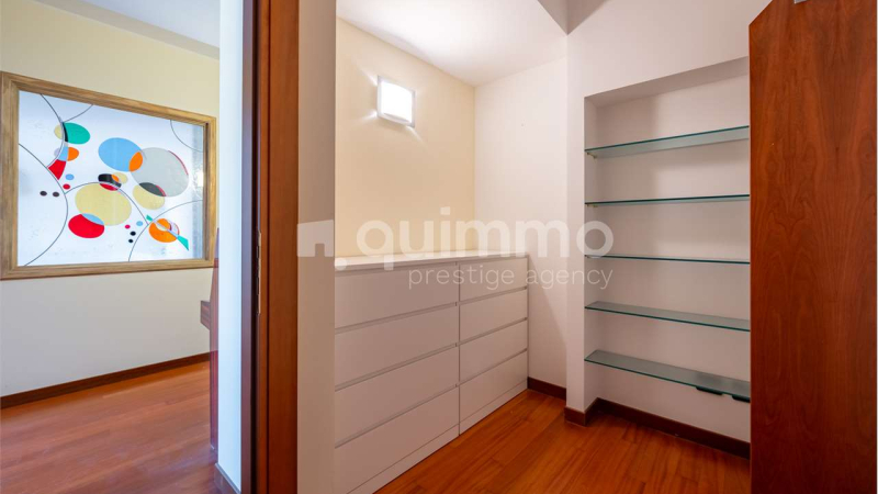 Il 6° piano accoglie un’ampia area living di rappresentanza, composta da soggiorno triplo e zona pranzo, con accesso diretto alla terrazza: uno spazio vivibile che estende gli ambienti verso l’esterno e valorizza la luce naturale. La cucina arredata con isola centrale e balconata dedicata, garantisce praticità e discrezione. La zona notte è composta da camera master con bain en suite e cabina armadio, e due ulteriori camere da letto con cabina armadio e bagno.
