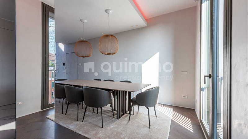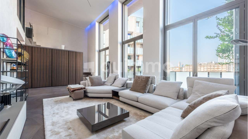 Nella zona più trendy di Milano, all’interno del complesso residenziale di recente realizzazione progettato dall’architetto Cino Zucchi e denominato “Corte Verde di Corso Como”, proponiamo in locazione prestigioso duplex di 250 metri quadrati commerciali con doppia esposizione, situato agli ultimi due piani dello stabile. L’unità immobiliare, molto luminosa e completamente arredata con mobili di design, è composta da un ampio living con doppia altezza e grandi vetrate che si affacciano sull'ampia terrazza di 40 metri quadrati, una sala da pranzo adiacente a una moderna e confortevole cucina a isola Ernesto Meda e un bagno ospiti con annessa zona lavanderia e ripostiglio. La zona notte, posta al piano superiore, collegata attraverso una scala interna, comprende l’ampia camera da letto principale con grande cabina armadio, ampio bagno en-suite completo di vasca idromassaggio e doccia - hamman, seconda camera da letto con bagno dedicato e guardaroba su misura a tutta altezza, ulteriore zona studio passante. Completano la proprietà due garage al piano interrato dello stabile. Finiture e arredi di pregio tra cui pavimentazione in parquet a grandi listoni e gres in tutti gli ambienti, bagni Gessi, corpi illuminanti Flos, armadi Lema, divani Minotti e letti Flou.