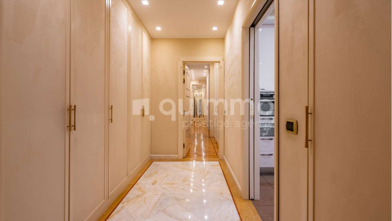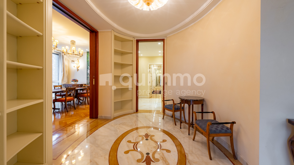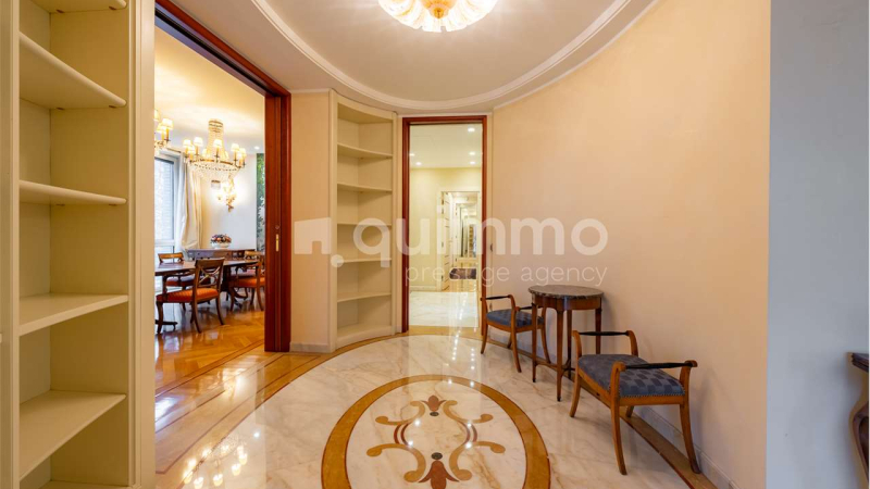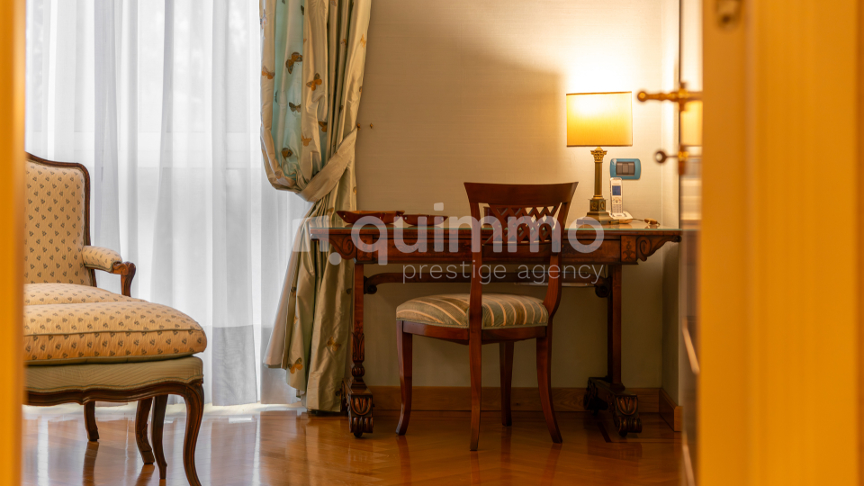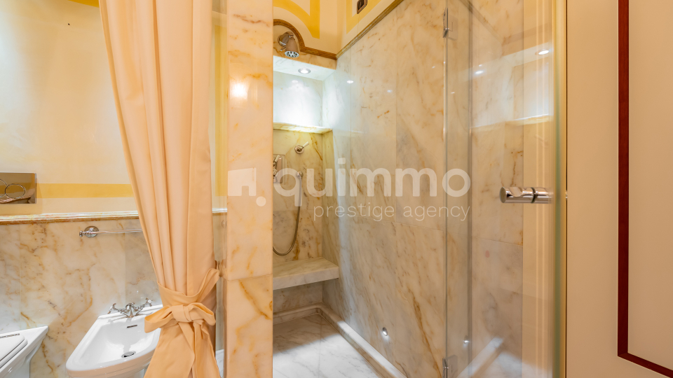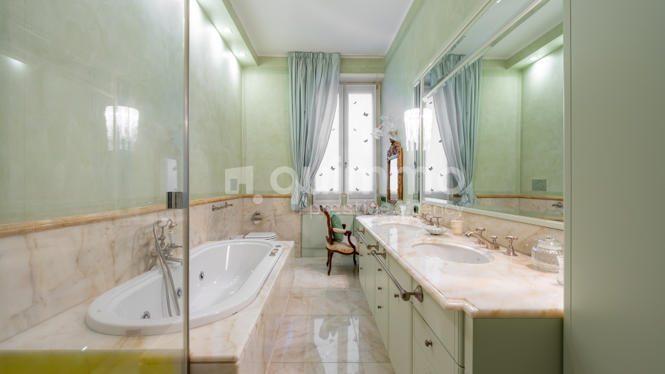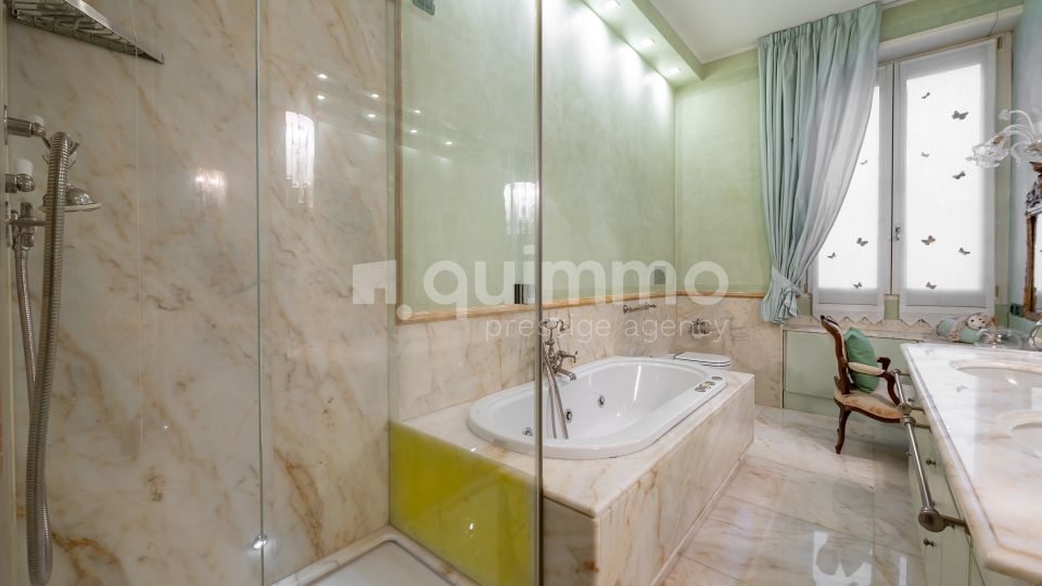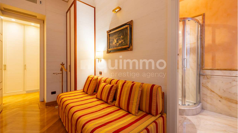 Le finiture sono di livello eccellente: bagni rivestiti in marmo Calacatta Oro, armadiature su misura rivestite in seta, arredi lussuosi realizzati su misura e un raffinato stile classico che conferisce all’immobile un carattere esclusivo e senza tempo.