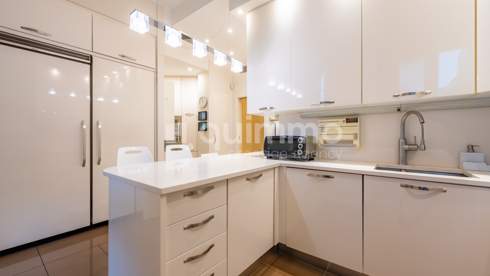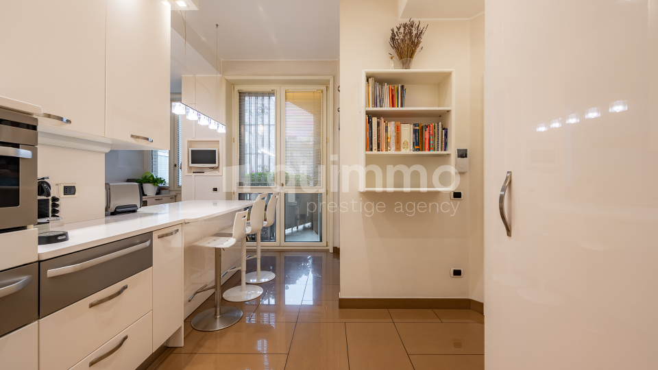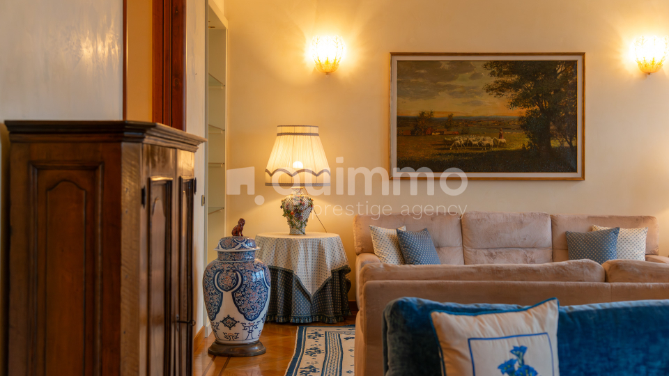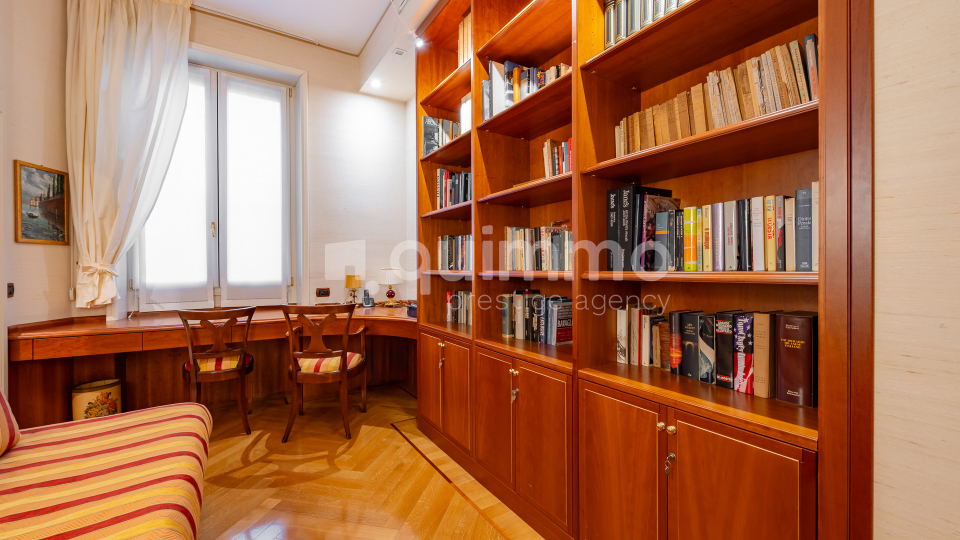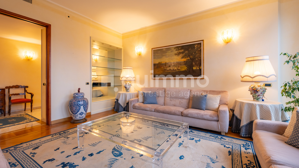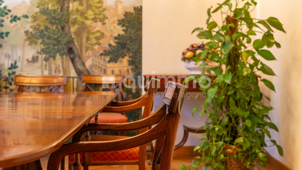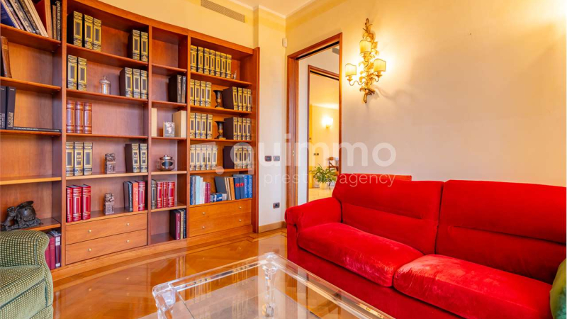 Le finiture sono di livello eccellente: bagni rivestiti in marmo Calacatta Oro, armadiature su misura rivestite in seta, arredi lussuosi realizzati su misura e un raffinato stile classico che conferisce all’immobile un carattere esclusivo e senza tempo.