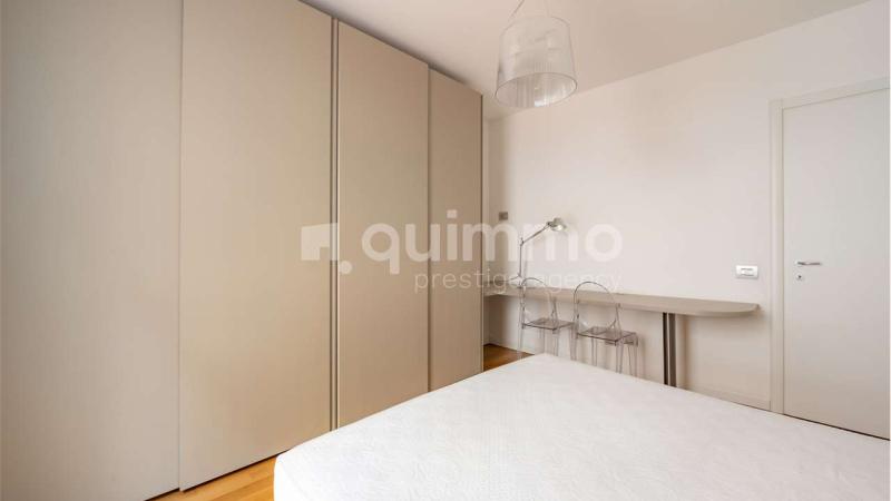 La zona notte è composta da una camera da letto con ampia armadiatura e una comoda postazione studio, mentre il bagno, moderno, è dotato di doccia.