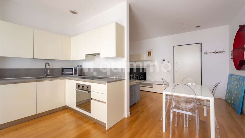 L’appartamento si trova all’interno di uno stabile di recente costruzione con portineria, garanzia di comfort e sicurezza. La casa, completamente arredata, si distingue per una distribuzione degli spazi pratica e funzionale: l’ingresso si apre su una luminosa zona giorno con area pranzo e cucina a vista, pensata per un utilizzo quotidiano semplice e piacevole.