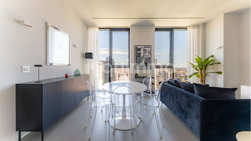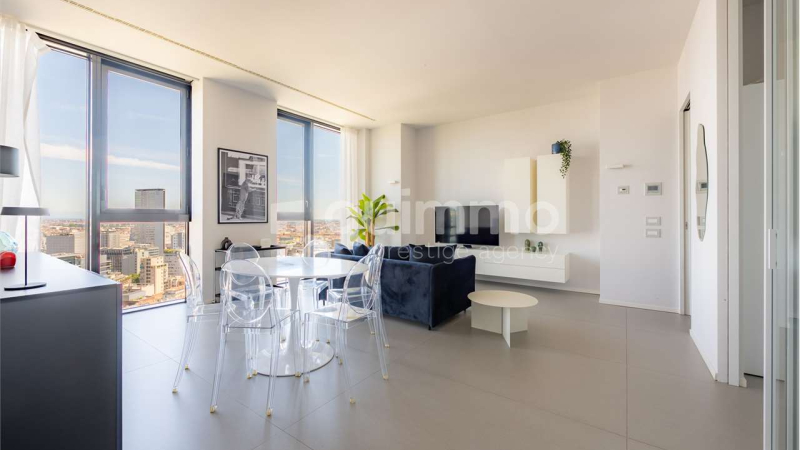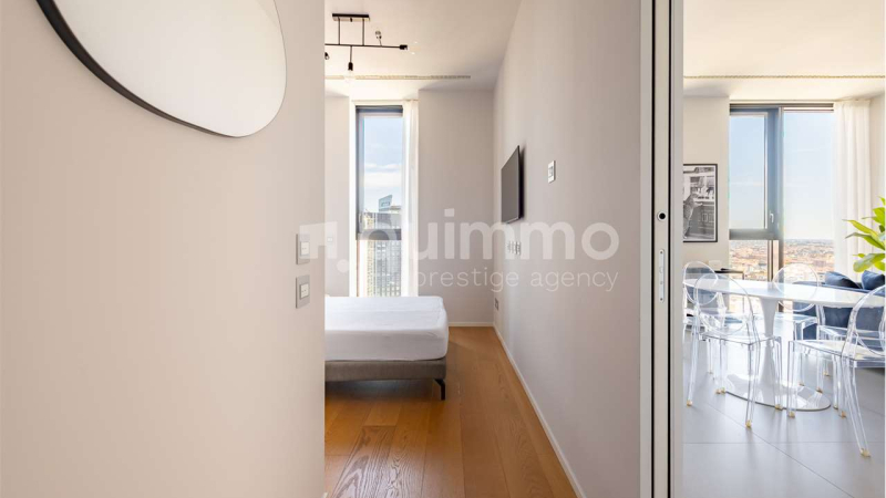 Torre Solaria: all'interno del prestigioso grattacielo residenziale più alto d'Italia ed inserito nel contesto più innovativo e moderno di Milano, proponiamo in locazione ad € 3.000 al mese, bellissimo appartamento di 77 mq, completamente arredato, con finiture di design, box e cantina di pertinenza. L’unità è composta da un living con stupenda vetrata a tutta altezza che affaccia sulle Alpi, sul Bosco Verticale e sullo splendido parco La Biblioteca degli Alberi, e kitchinette separata da ante scorrevoli. La camera da letto matrimoniale è dotata di cabina armadio su misura. Il bagno è rivestito in pietra naturale ed è completo di vasca da bagno. Possibilità affitto short-term, minimo 1 mese, ad € 4.000/mese all'inclusive, spese condominiali e utenze comprese. La Torre Solaria prevede servizi 24/7 quali: Concierge, Security e Property Management. Le Amenities sono ad uso esclusivo dei condomini: Party room, home theatre con maxischermo, Area fitness e Meeting room progettata per videoconference. Il drop-off per auto consente agli ospiti l'accesso diretto all'ingresso dell'edificio; un' area riservata dedicata alla posta, un'area di comodità per appoggio passeggini, un'area parcheggio biciclette ed un'area accoglienza e attesa ospiti rendono unico il vivere in Torre Solaria.