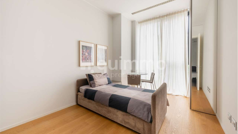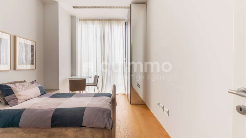 L’unità, al quarto piano fuori terra, è composta da un ampio living con zona pranzo e terrazzo di 35 mq, con splendida vista panoramica sul Bosco Verticale ed il Parco La Biblioteca degli Alberi, cucina di design completamente attrezzata, camera master con bagno dedicato e walk in closet e seconda camera da letto con bagno ed armadiature su misura. La cura dei materiali e delle finiture testimoniano l’alta qualità e l’eleganza dell’abitazione. Completa la proprietà un box singola ed una cantina.