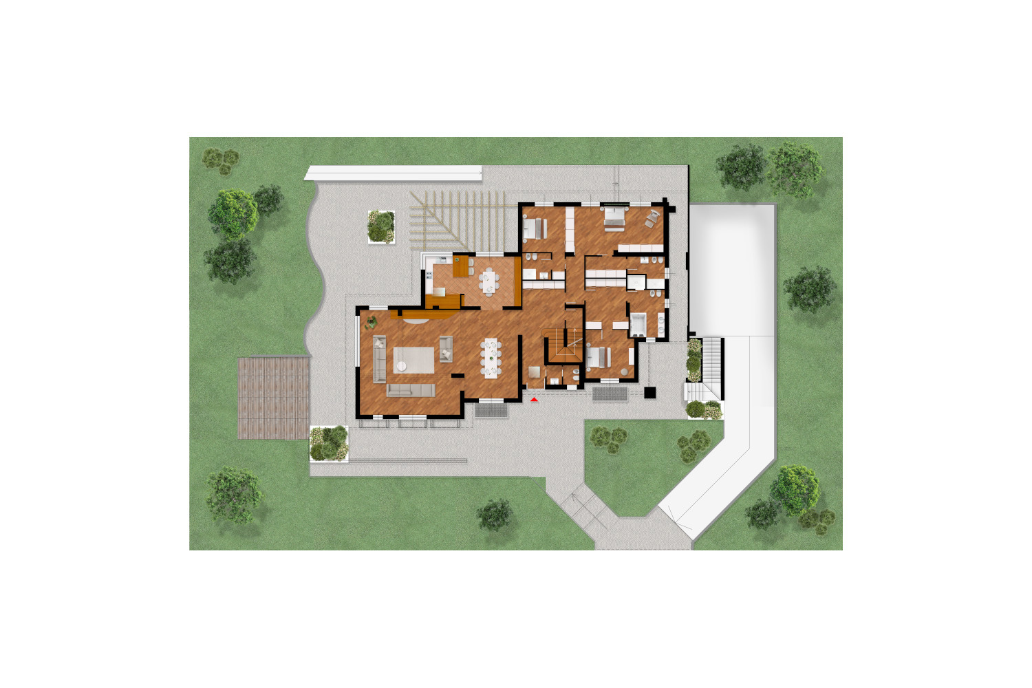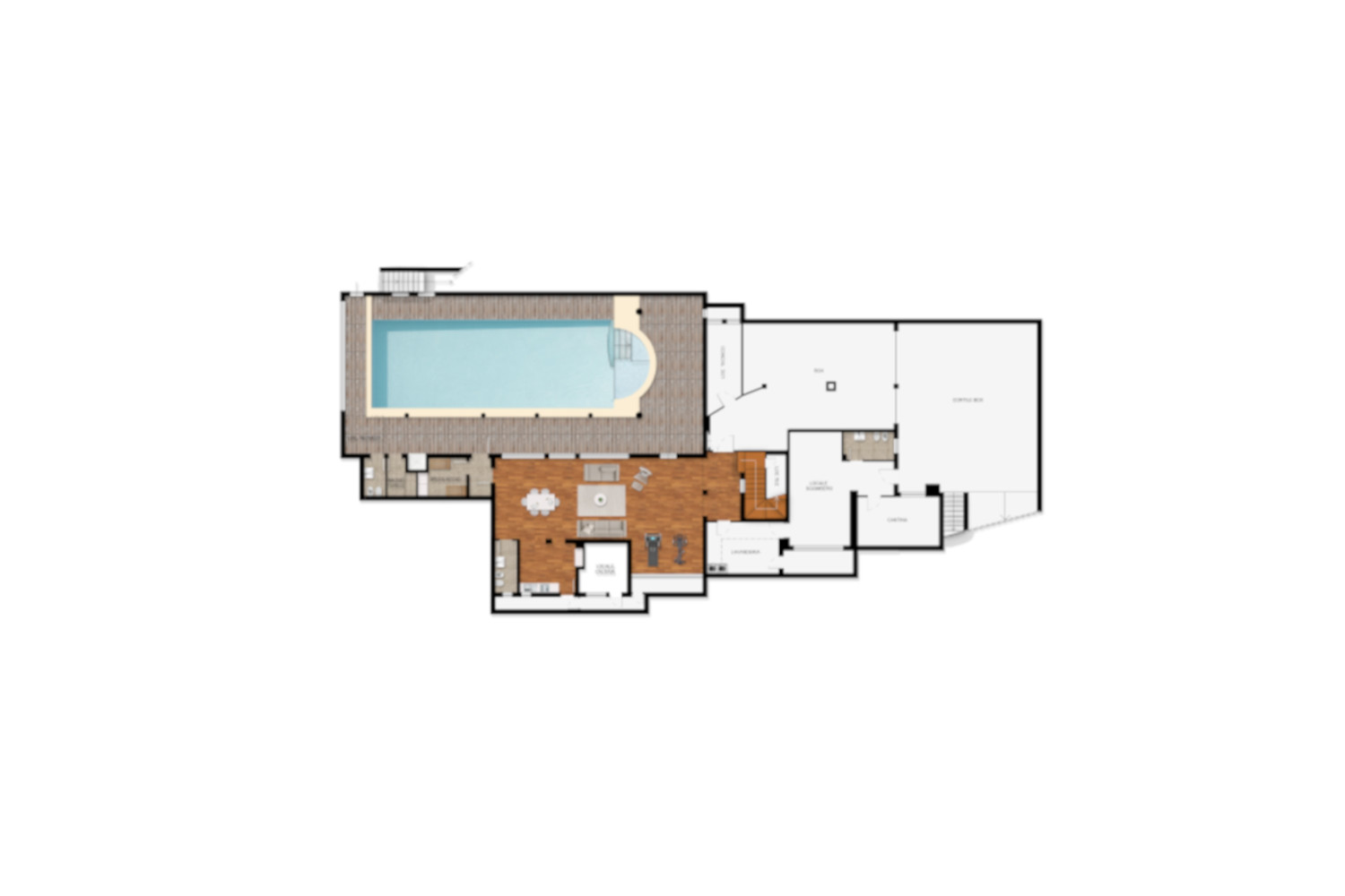 Il piano seminterrato rappresenta il vero cuore del benessere: una meravigliosa piscina coperta, interamente fruibile tutto l’anno, accompagnata da spogliatoio, servizi dedicati e un rilassante bagno turco. Completa questo livello una spaziosa taverna, perfetta per piacevoli momenti conviviali, oltre a lavanderia e locale tecnico.