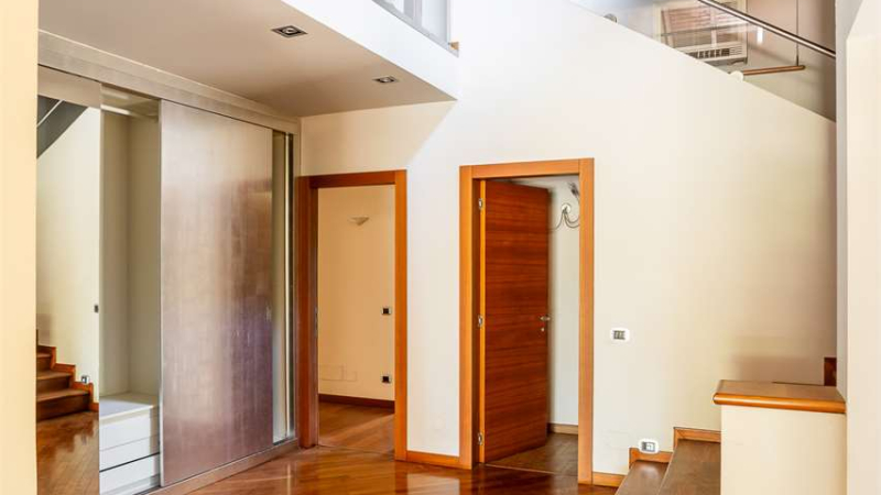 Al piano primo la zona notte comprende una splendida suite padronale dotata di bagno privato, due funzionali cabine armadio e uno studio perfettamente illuminato, ideale come angolo lavoro o lettura.