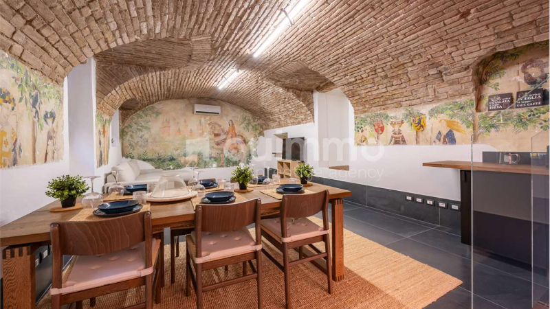 Appena si varca la soglia si avverte la particolarità del soffitto a cassettoni del ‘600 restaurato con maestria, il volume è superiore ai 6 mt, le volte in mattoni, presenti nel secondo living avvolgono gli ospiti in un’atmosfera d’altri tempi di eleganza e calore. Gli affreschi, realizzata dagli accademici di Brera completano le pareti: frammenti d’arte che raccontano il passato dell’edificio e dialogano in modo sorprendente con gli arredi moderni.