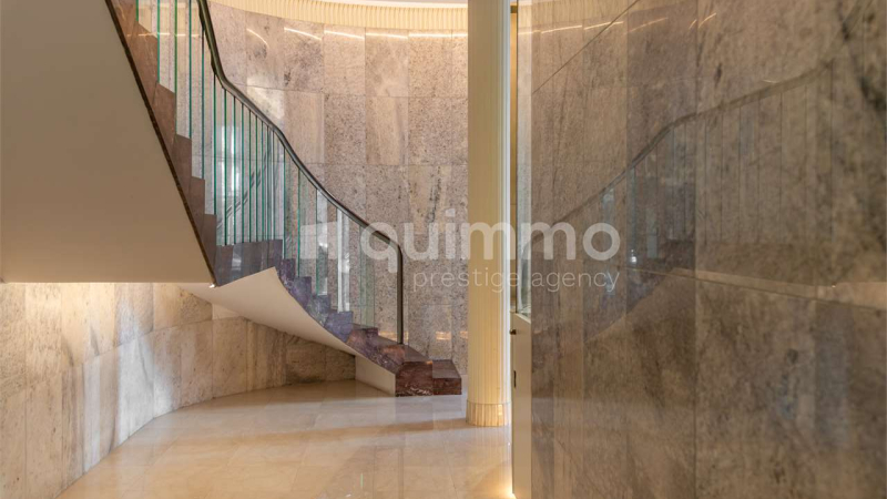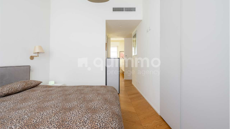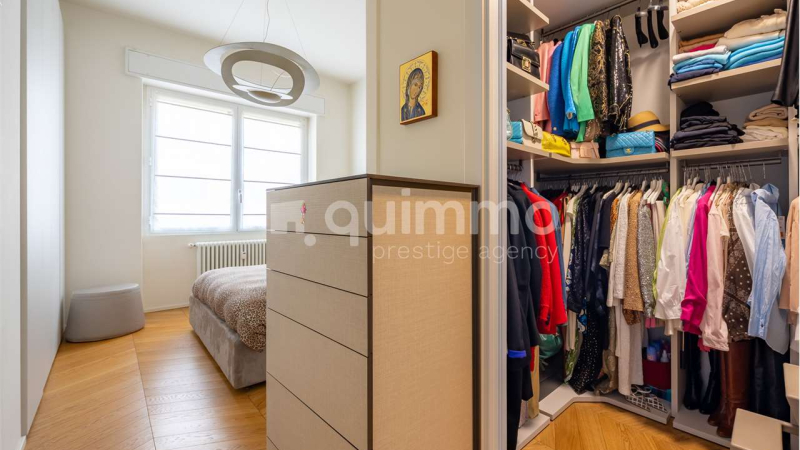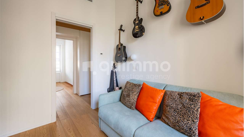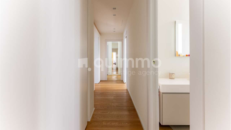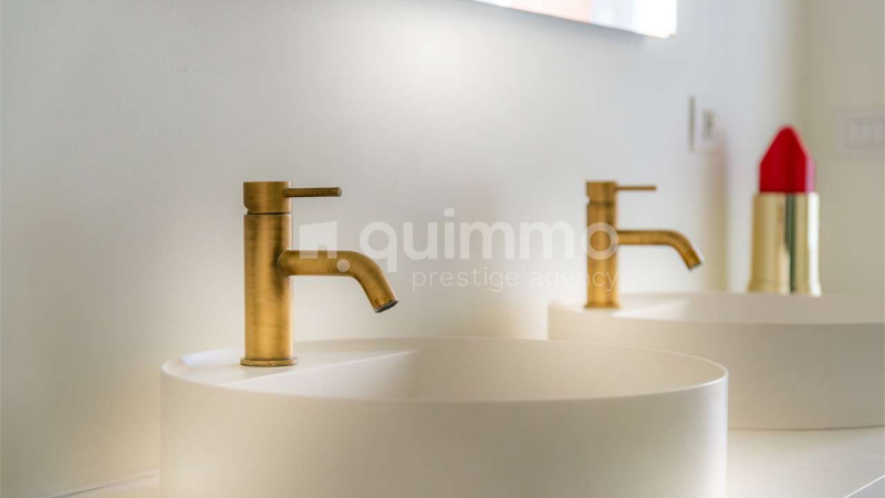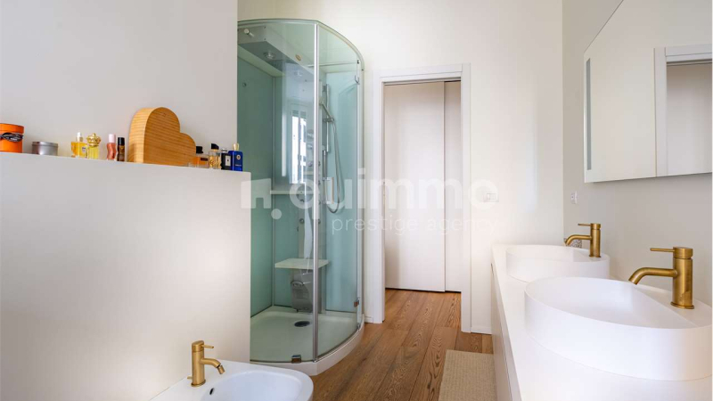 La zona notte è ben distinta e organizzata con tre camere da letto, due bagni completi e numerose armadiature integrate, offrendo comfort, privacy e ordine visivo. Ogni ambiente è stato valorizzato da arredi di design e finiture di alta gamma, scelti con coerenza stilistica e attenzione al dettaglio.